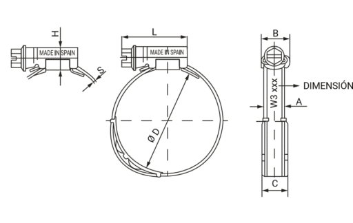 Główną zaletą  tej opaski w porównaniu ze standardową obejmą ślimakową jest sprężynowa wkładka, zamocowana na półkolistym wsporniku po wewnętrznej stronie opaski. Zastosowanie takiego rozwiązania gwarantuje stałe ciśnienie wokół węża oraz optymalną wydajność w przypadku zmian temperatury, ciśnienia lub wibracji.