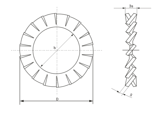 Stałe nachylenie zębów, które nakładają się jeden na drugi na obwodzie podkładki, daje bardzo wysoki współczynnik tarcia, pozwalający na progresywne i równomiernie rozłożone momenty dokręcania wokół łba lub wkrętu.